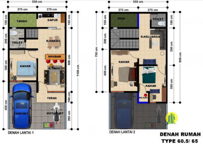 ✓ LT 60,5/LB 65 (2 lantai)
