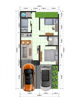 • Row utama: 12 meter